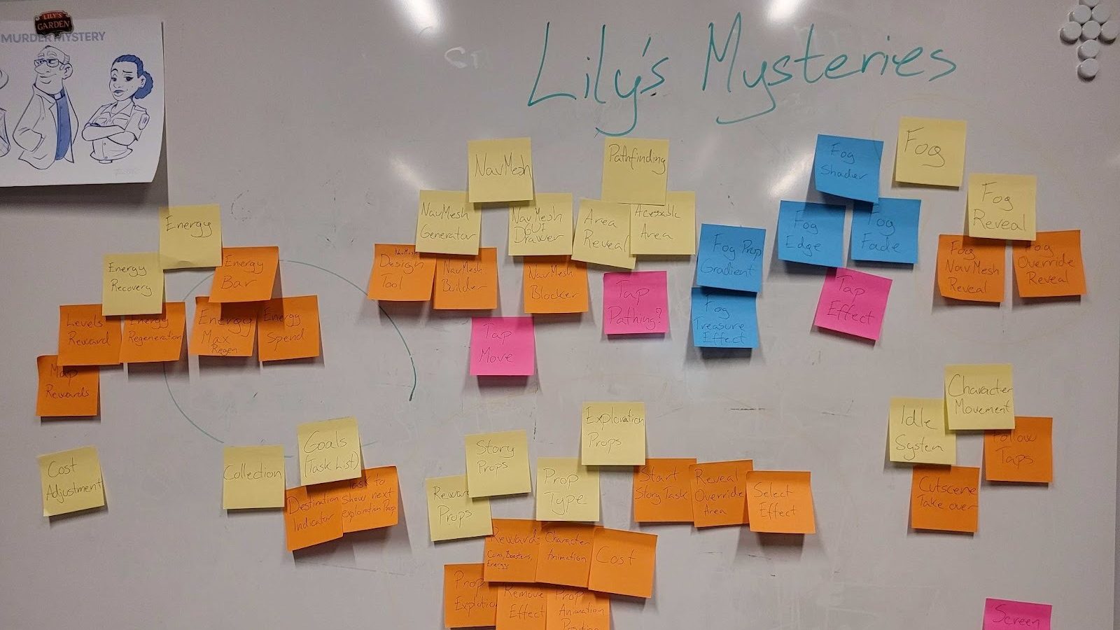 At that point, Roche, one of our Unity Tools Programmers, joined the crew. Her addition to the team was crucial, as it was no small feat to move Lily’s Mysteries, its own game built on its own principles, into a mature game like Lily’s Garden. The team had to establish a new development pipeline, new workflows and in the middle of all of this, they switched to working in scrum, as the entire company moved away from following a more traditional waterfall approach.