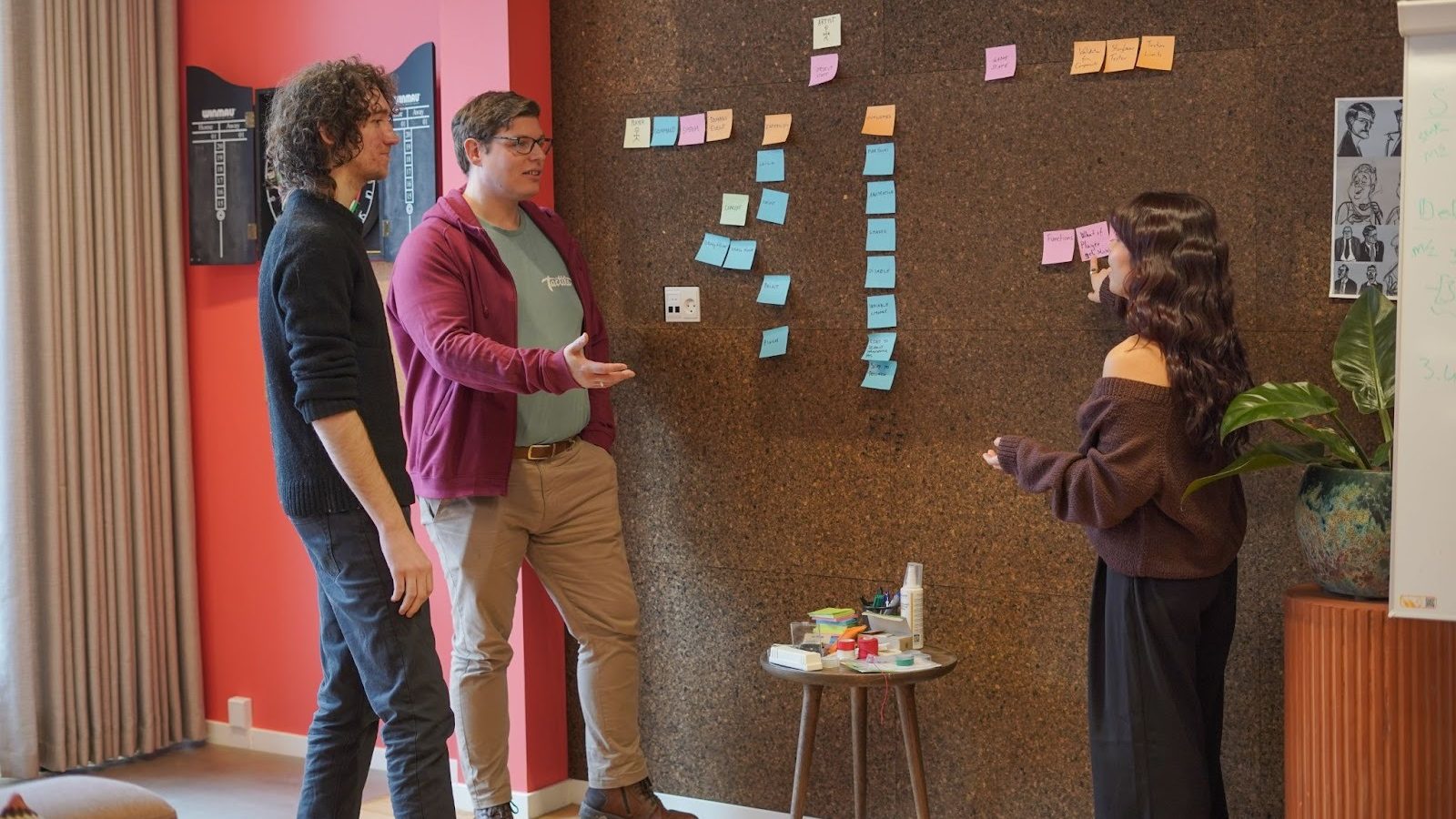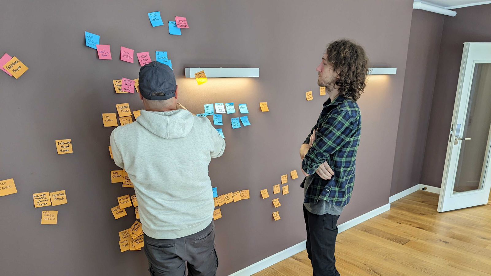At this point, Mikkel, the game director and a gameplay programmer started solidifying the concept, quite literally, with sticky notes and an empty wall.